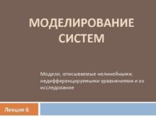 МОДЕЛИРОВАНИЕ СИСТЕМ Модели описываемые нелинейными недифференцируемыми уравнениями и