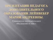 ПРЕЗЕНТАЦИЯ ПЕДАГОГА ДОПОЛНИТЕЛЬНОГО ОБРАЗОВАНИЯ ЛЕЙНВЕБЕР МАРИИ АНДРЕЕВНЫ Руководитель