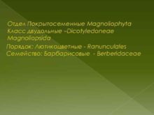 Отдел Покрытосеменные Magnoliophyta Класс двудольные Dicotyledoneae Magnoliopsida Порядок