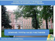 ОСНОВЫ ОРГАНИЗАЦИИ И ПРОВЕДЕНИЯ СОЦИАЛЬНО-ПСИХОЛОГИЧЕСКОГО ТРЕНИНГА ВЛИЯНИЕ ГРУППЫ
