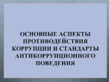 ОСНОВНЫЕ АСПЕКТЫ ПРОТИВОДЕЙСТВИЯ КОРРУПЦИИ И СТАНДАРТЫ АНТИКОРРУПЦИОННОГО ПОВЕДЕНИЯ