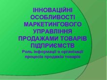 ІННОВАЦІЙНІ ОСОБЛИВОСТІ МАРКЕТИНГОВОГО УПРАВЛІННЯ ПРОДАЖАМИ ТОВАРІВ ПІДПРИЄМСТВ Роль