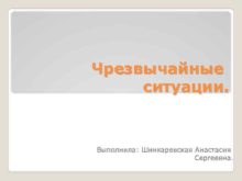 Чрезвычайные ситуации Выполнила Шинкаревская Анастасия Сергеевна План