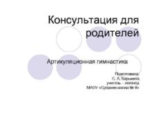 Консультация для родителей Артикуляционная гимнастика Подготовила С А