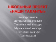 ШКОЛЬНЫЙ ПРОЕКТ НАШИ ТАЛАНТЫ Конкурс чтецов Литературный конкурс