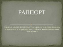 РАППОРТ эмоциональная и интеллектуальная связь между людьми основанием
