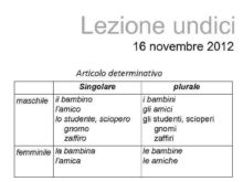 Lezione undici 16 novembre 2012 Articolo determinativo Singolare