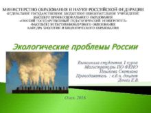 Экологические проблемы России Выполнила студентка 1 курса Магистратуры