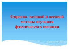 Опросно- весовой и весовой методы изучения фактического питания