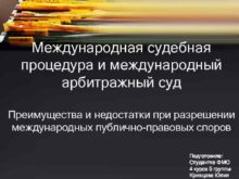 Международная судебная процедура и международный арбитражный суд Преимущества