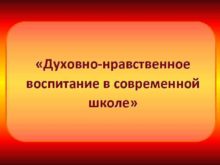 Духовно-нравственное воспитание в современной школе Актуальность