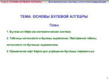 Тема 2 ОСНОВЫ БУЛЕВОЙ АЛГЕБРЫ Вычислительные системы сети