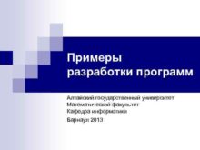 Примеры разработки программ Алтайский государственный университет Математический факультет