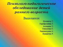 Психолого-педагогическое обследование детей раннего возраста Выполнили Долингер Т