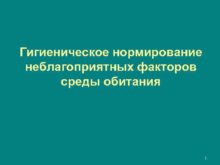 Гигиеническое нормирование неблагоприятных факторов среды обитания 1