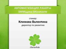 АВТОМАТИЗАЦИЯ РАБОТЫ SMMщика ВКонтакте спикер Климова Валентина директор