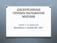 ДИСКУРСИВНЫЕ ПРИЕМЫ ВЫРАЖЕНИЯ МНЕНИЯ Автор С В Доронина