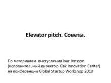 Elevator pitch Советы По материалам выступления Ivar Jonsson
