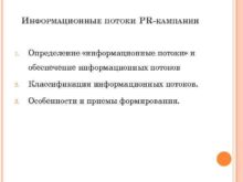 ИНФОРМАЦИОННЫЕ ПОТОКИ PR-КАМПАНИИ 1 Определение информационные потоки и