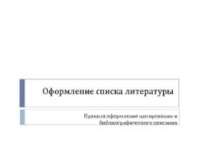 Оформление списка литературы Правила оформление цитирования и библиографического