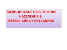 МЕДИЦИНСКОЕ ОБЕСПЕЧЕНИЕ НАСЕЛЕНИЯ В ЧРЕЗВЫЧАЙНЫХ СИТУАЦИЯХ Медицинское