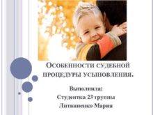 ОСОБЕННОСТИ СУДЕБНОЙ ПРОЦЕДУРЫ УСЫНОВЛЕНИЯ Выполнила Студентка 23 группы