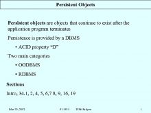 Persistent Objects Persistent objects are objects that continue
