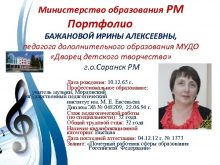 Министерство образования РМ Портфолио БАЖАНОВОЙ ИРИНЫ АЛЕКСЕЕВНЫ педагога