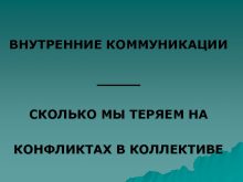 ВНУТРЕННИЕ КОММУНИКАЦИИ _____ СКОЛЬКО МЫ ТЕРЯЕМ НА КОНФЛИКТАХ
