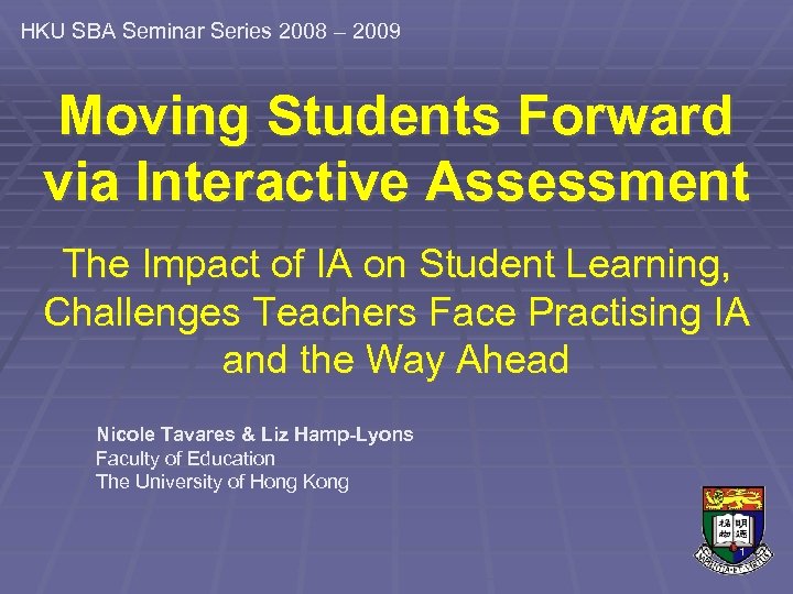 HKU SBA Seminar Series 2008 2009 Moving