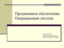 Программное обеспечение Операционная система Склярова Т Г учитель