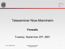 Teleseminar Nice-Mannheim Firewalls Tuesday September 25 th 2001