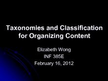 Taxonomies and Classification for Organizing Content Elizabeth Wong