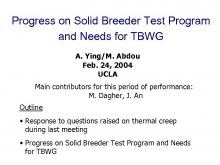 Progress on Solid Breeder Test Program and Needs