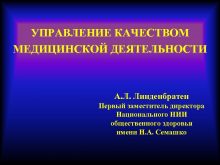 УПРАВЛЕНИЕ КАЧЕСТВОМ МЕДИЦИНСКОЙ ДЕЯТЕЛЬНОСТИ А Л Линденбратен Первый