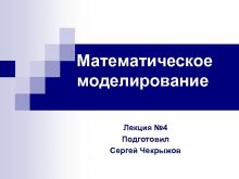 Математическое моделирование Лекция 4 Подготовил Сергей Чекрыжов