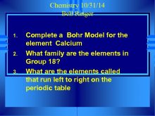 Chemistry 10 31 14 Bell Ringer 1 2 3 Complete