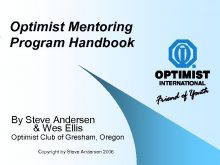 Optimist Mentoring Program Handbook By Steve Andersen