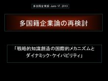 多国籍企業論 June 17 2013 多国籍企業論の再検討 戦略的知識創造の国際的メカニズムと ダイナミック ケイパビリティ 1