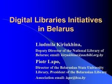 Digital Libraries Initiatives in Belarus Liudmila Kiriukhina Deputy