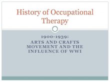 History of Occupational Therapy 1900 -1939 ARTS AND