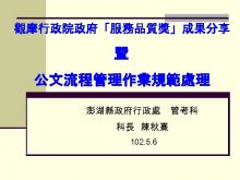 觀摩行政院政府 服務品質獎 成果分享 暨 公文流程管理作業規範處理 澎湖縣政府行政處 科長 陳秋熹 102 5