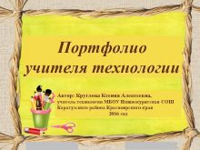 Портфолио учителя технологии Автор Круглова Ксения Алексеевна учитель