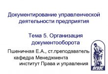 Документирование управленческой деятельности предприятия Тема 5 Организация документооборота