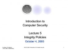 Introduction to Computer Security Lecture 5 Integrity Policies