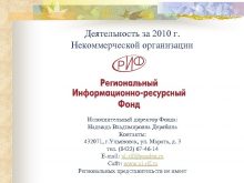 Деятельность за 2010 г Некоммерческой организации Исполнительный директор