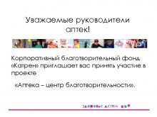Уважаемые руководители аптек Корпоративный благотворительный фонд Катрен приглашает