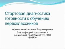 Стартовая диагностика готовности к обучению первоклассников Афанасьева Наталья