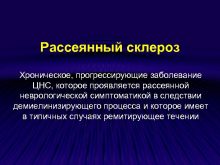 Рассеянный склероз Хроническое прогрессирующие заболевание ЦНС которое проявляется