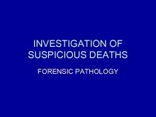 INVESTIGATION OF SUSPICIOUS DEATHS FORENSIC PATHOLOGY Pathologist s